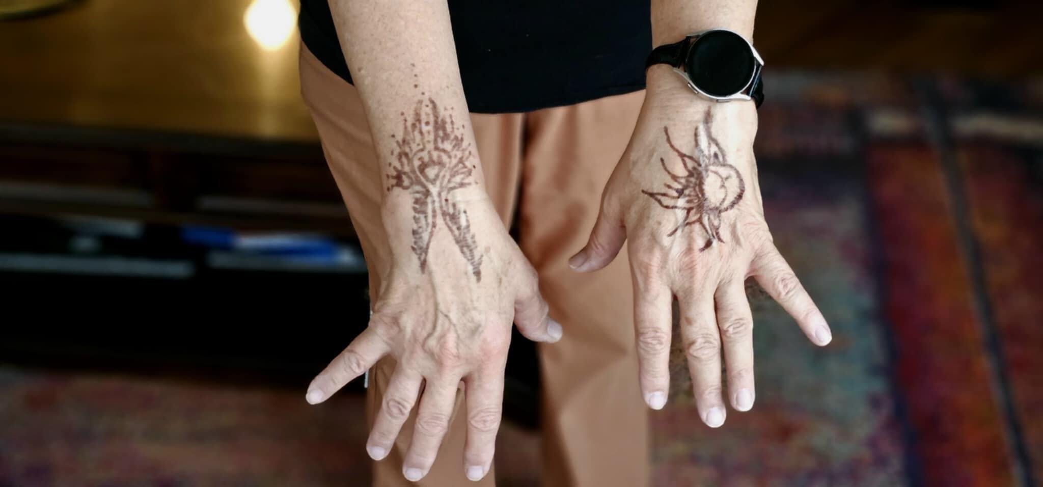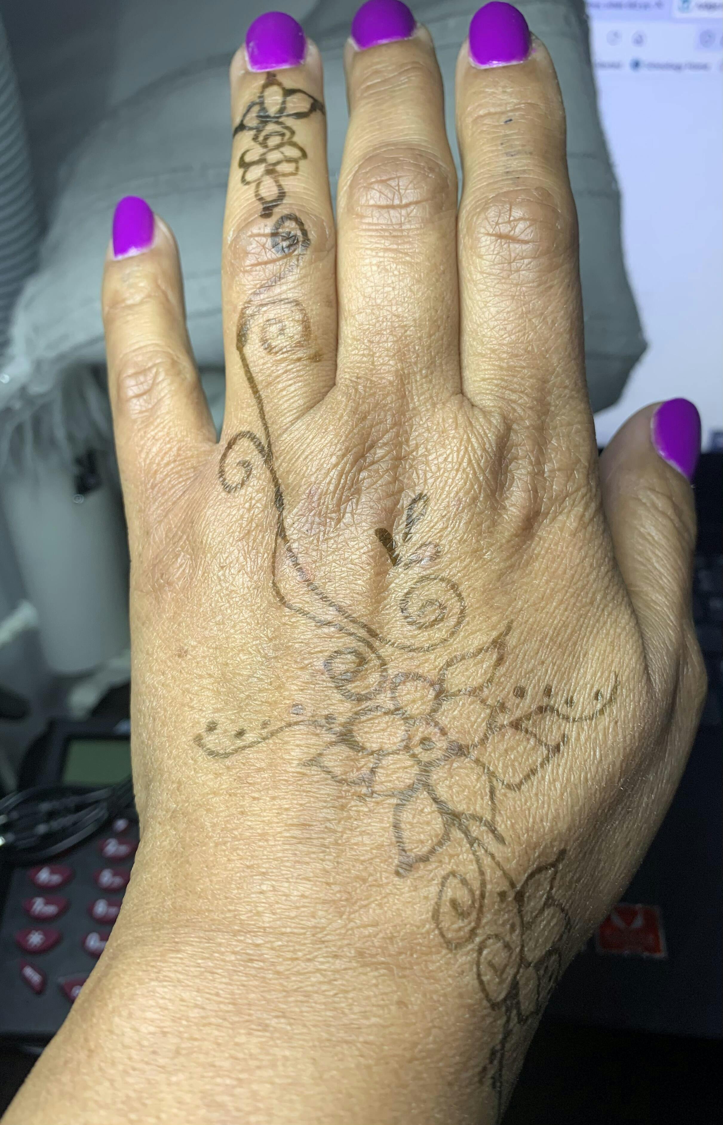 Stain color and tone will vary depending on where it’s applied on the body as well as individual body chemistry, ranging from plummy brown to eggplant-black. Like all natural henna and jagua products, hands and feet stain darkest especially on the palms and soles. Arms and legs are a bit lighter, and even lighter on the torso. It will be very light on the chest/neck/face. Follow our included aftercare instructions to achieve the darkest stain possible!